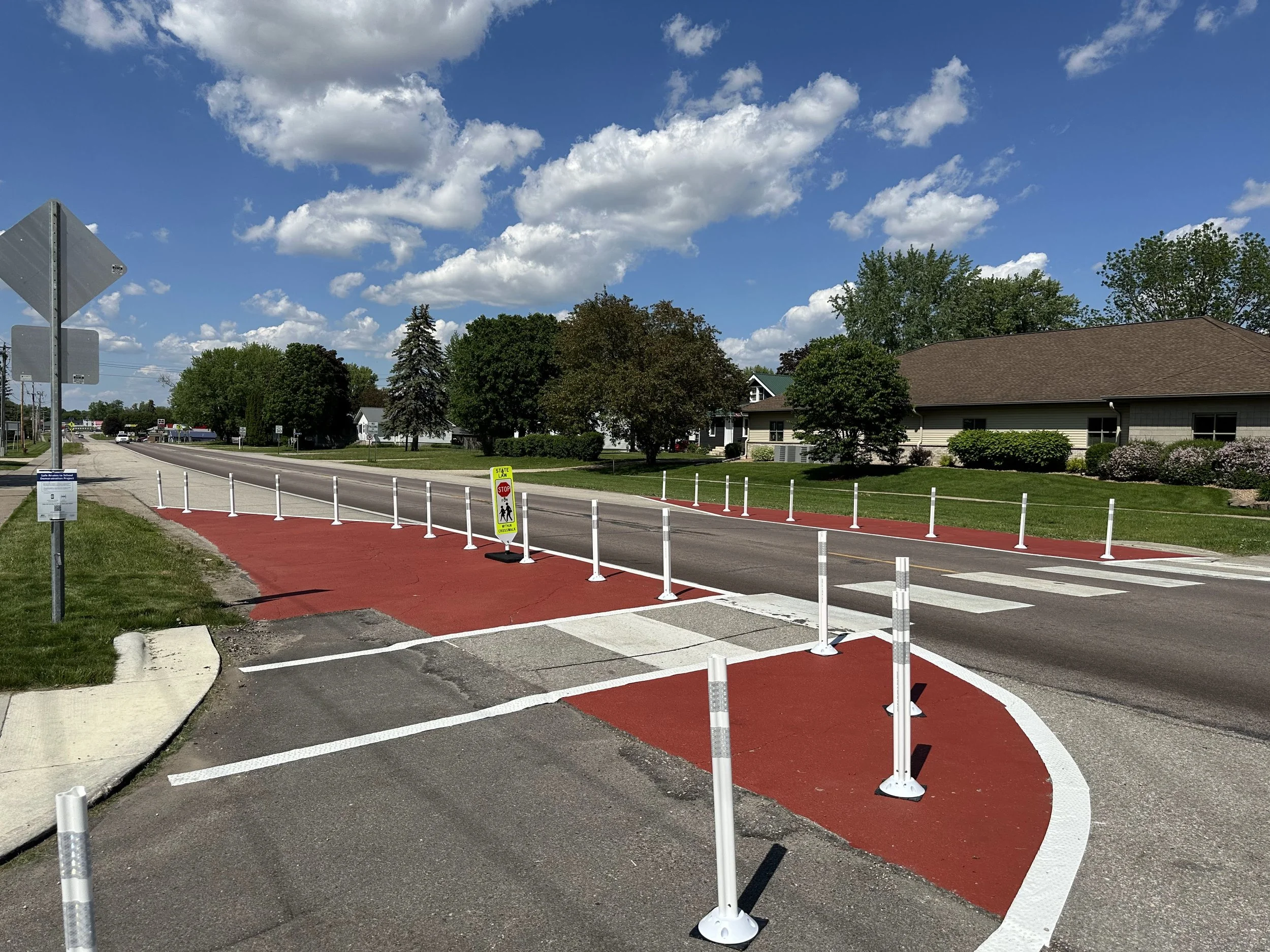 We design, install and test low-cost, short-, mid- and long-term temporary roadway projects that can be used to pilot long term solutions to improve the safety of walking, biking and public spaces. These projects can include, DOT right of ways, Safe Routes to School, ADA compliant ramps, custom crossings and more.
